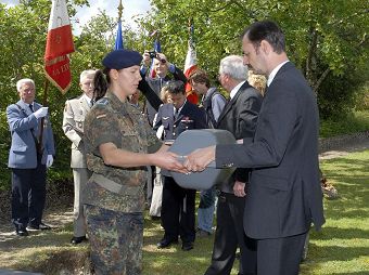 Ein Soldat der Französisch-Deutschen Brigade trägt einen Sarg, Berneuil, den 23. Juni 2007 (rechts der Berliner Europaabgeordnete Roland Gewalt).