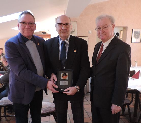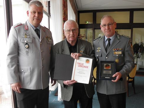 Vor dem gemütlichen Teil des Dämmerschoppens konnte der Vorsitzende zusammen mit dem Bezirksvorsitzenden noch einige verdiente Mitglieder für ihre langjährige Mitgliedschaft im DBwV ehren. „Es freut mich, dass wir hier in Berlin so viele treue Mitglieder haben.“, zeigte sich Ingo Zergiebel bei der Auszeichnung sichtlich stolz.