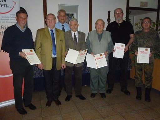 Die Geehrten der StOKa Berlin gemeinsam mit dem Bzirksvorsitzenden StFw a.D. Frank Reiche und dem Vorsitzenden der StOKa Hptm Ingo Zergiebel