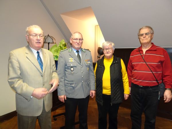 Zu Beginn gratulierten der Vorsitzende Oberst a.D. Günter Werdermann und der Bezirksvorsitzende Ehemalige im Bezirk Berlin-Brandenburg Oberstabsfeldwebel a.D. und Stabsfeldwebel d.R. Frank Udo Reiche den Vorstandsmitgliedern Uta Regenbrecht und Major d.R. Ohström zum kürzlich begangenen 80. Geburtstag.