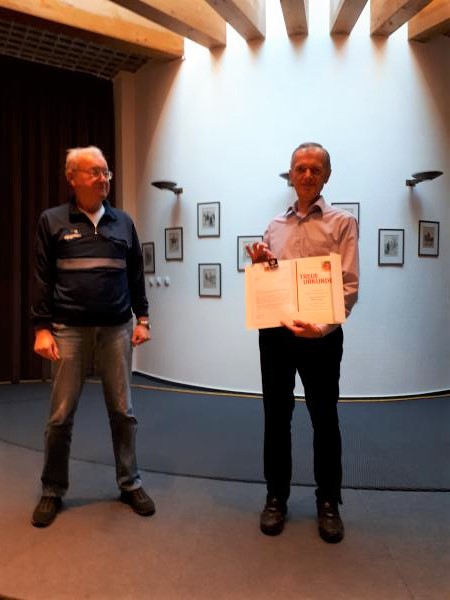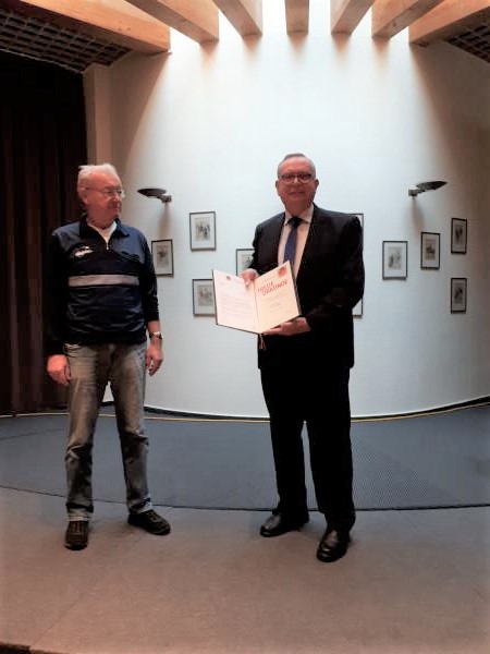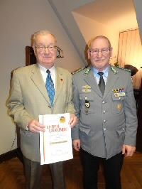 Oberst a.D. Günter Werdermann nahm völlig überrascht und erfreut die Ehrennadel in Gold des Bundesvorsitzenden entgegen.