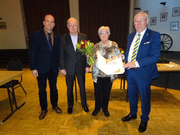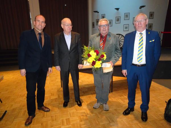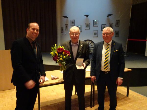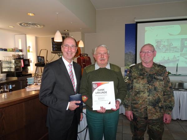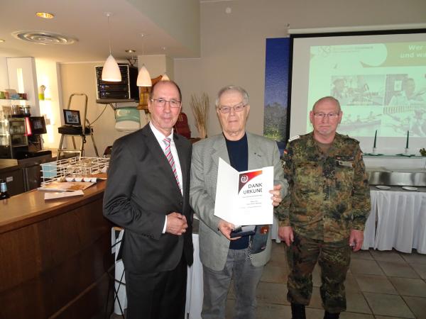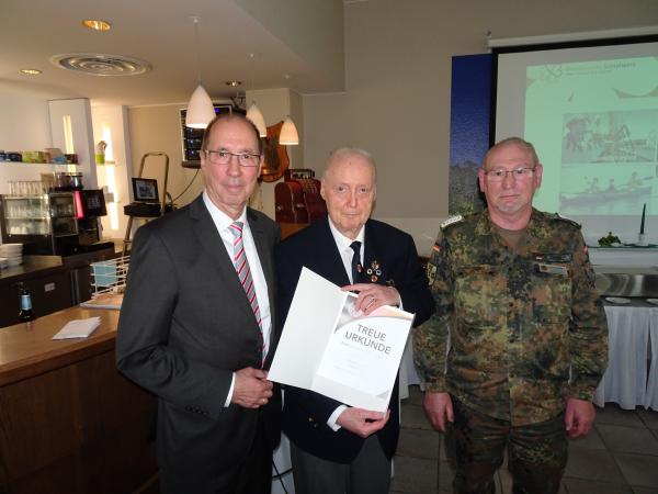 Oberstleutnant a.D. Giese (M) mit Ehrenurkunde und Ehrennadel in Bronze