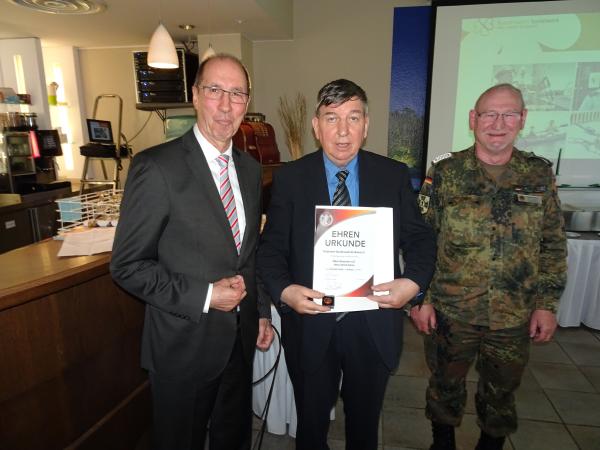 Anschließend wurden die Vorstandsmitglieder Major d.R. Klaus-Dieter Ohström und Oberstleutnant a.D. Winfried Bachstein für ihre 30jährige Mandatstätigkeit ausgezeichnet.